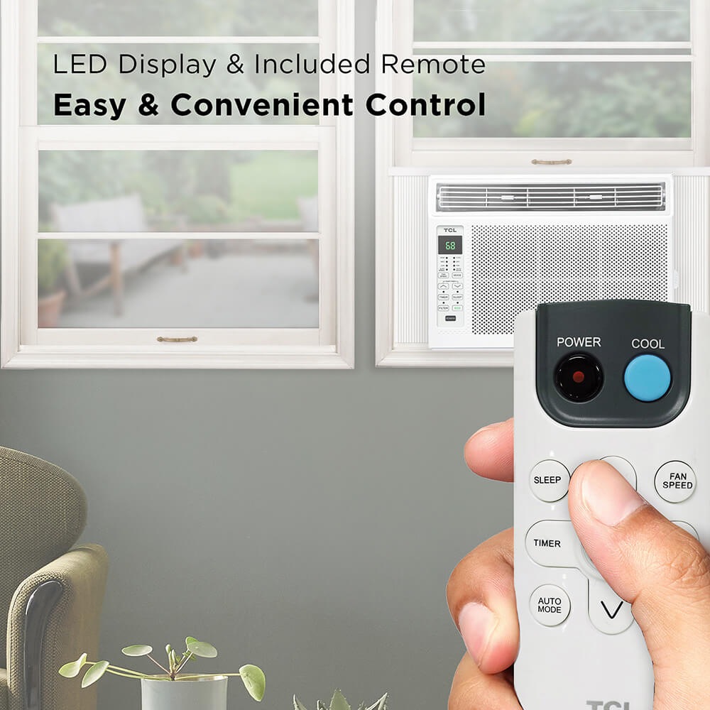 Stay cool and in control with the powerful cooling capacity of the TCL 5,000 BTU Window Air Conditioner that can cool rooms up to 150 sq. ft. TCL’s line of window AC units keeps your energy bill low with the additional Sleep and Eco modes. The washable and reusable filter helps protect the life of your AC while also reducing large airborne particles like dust and pet hair. The included guided instructions mean you don’t have to be an expert technician to set up your window AC. Once set up, the LED display makes controlling your window air conditioner simple, while the included remote lets you effortlessly control the unit without ever leaving the couch. It’s time to enjoy your home the way it was meant to be.